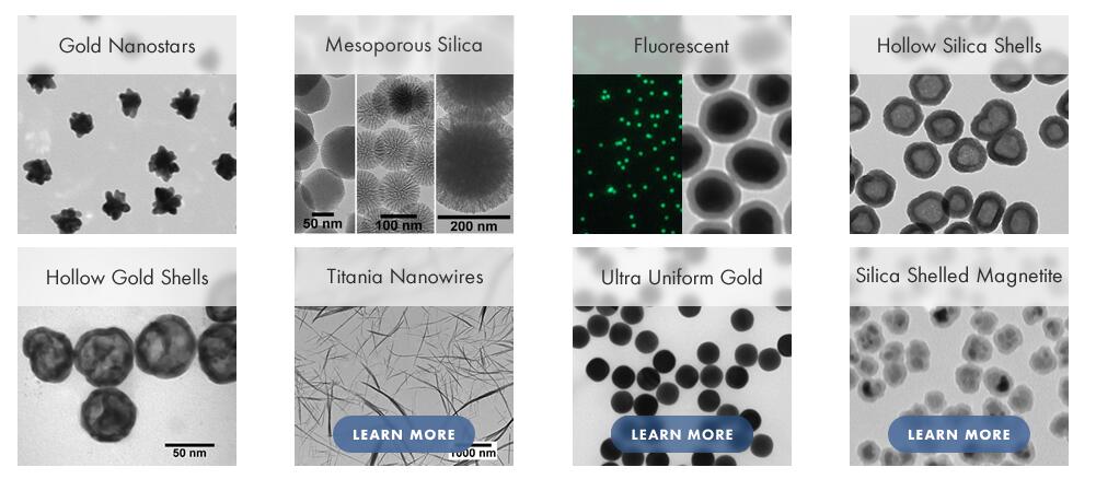我們的標準黃金和銀納米顆粒具有各種不同的可用陰離子和陽(yáng)離子封端配體。此外,我們可以制造具有特定官能團,聚合物,生物分子和無(wú)機涂層的納米材料。控制的二氧化硅涂層可以應用于我們的大部分顆粒。